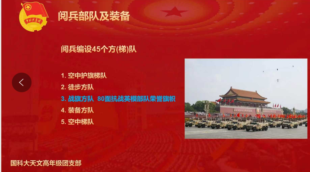 接着,石瑞峰同志为大家详细介绍了阅兵部队及装备编制情况。此次阅兵共有45个方队,包括空中护旗梯队、徒步方队、战旗方队、装备方队以及空中梯队。本次亮相的一批高超声速、防空反导、战略导弹等先进装备,充分体现了我军的战略威慑力量与科技自强精神。